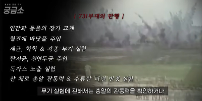 과거 731 부대의 실험, 만행은 아래 영상으로 확인해 보실 수 있습니다.