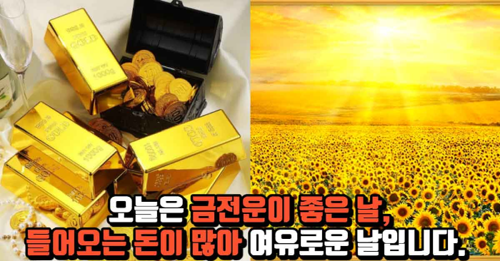 62년생 금전운이 좋으니 나가는 돈보다 들어오는 돈이 많아 여유로운 날입니다.